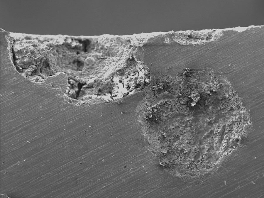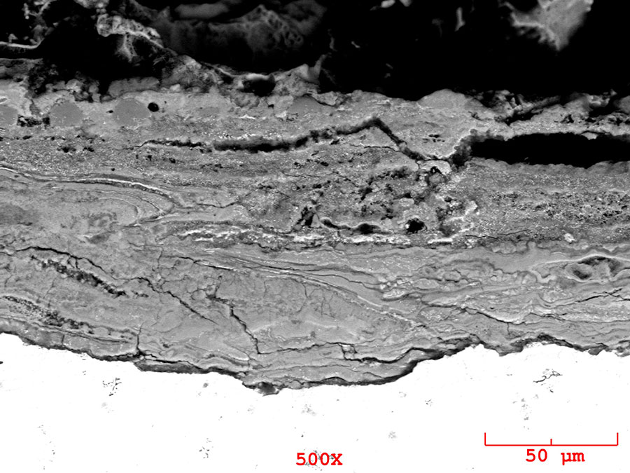 The cause of corriosion can be microbiologically influenced corrosion (MIC), and nonbiological metal corrosion processes. Houston Electron Microscopy can investigate the root cause of the corrosion problem with the aid of our SEM/EDS system.